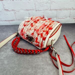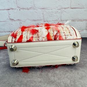 White leather trim and silver toned hardware