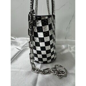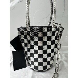 Authentic Alexander Wang Roxy Metallic Checkboard White Black Mini Bucket Bag