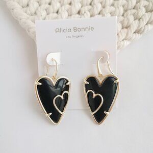 Alicia Bonnie Iris Gold Black Heart Drop Earrings