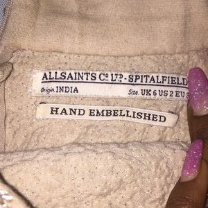 Elegant glamorous hand embellished ALLSAINTS skirt soft but boldly rich material and unique sequence. Skirt fits perfectly and can be worn to any elegant affairs. Size xxs or s. Great condition!! Feel free to make offers