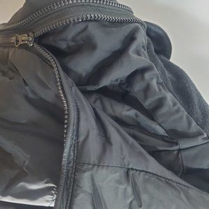 Authentic Alpine Design. Snowboard Jacket, Ladies S 6-8 Black/White with lining 3 in 1 jacket. All zippers are checked and working. No rips or tears. The white parts of the jacket you can see some discoloration. I soaked it in Borax. It is good but not perfect. It would make a great mountain jacket. Please see all pictures and realize it is not in factory mint condition. Overall it is still a good, warm jacket great for riding. Measurements as follows taken from the liner, if the liner fits the shell will fit over.