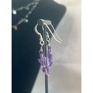 Authentic Amethyst Silver Pierced Earrings Handmade Purple Dangle Casual Everyda