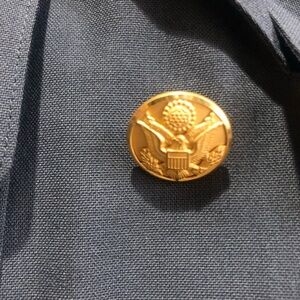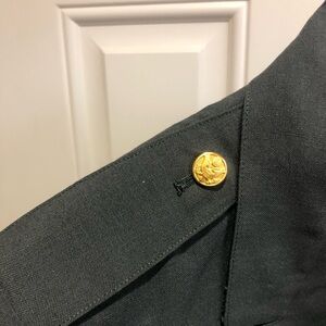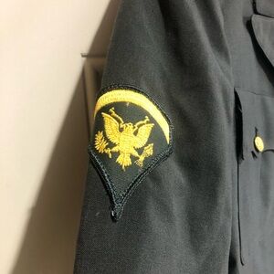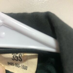 Authentic Army jacket . green and gold vintage military jacket jacket #militaryinspired. Shoulder seam to shoulder seam measures a little over 16inches . Sleeve length from shoulder to cuff is about 22.5 inches. Overall length about 29inches. Not sure of size - possibly a SMALL ,I did take pictures of the tag on the collar .