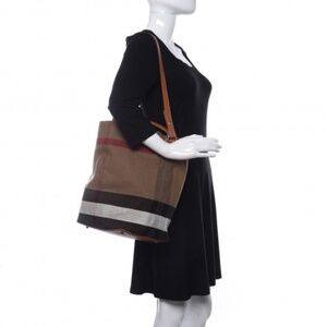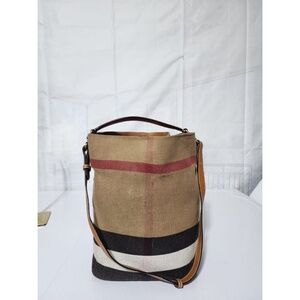 Authentic BURBERRY Canvas Mega Check Medium Ashby Hobo Saddle Bag Brown