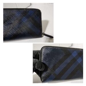 Authentic BURBERRY London Check Zip Around Wallet Navy Blue
