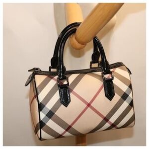 Authentic BURBERRY Nova Check Coated Canvas Shoulder Bag Beige/Black