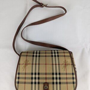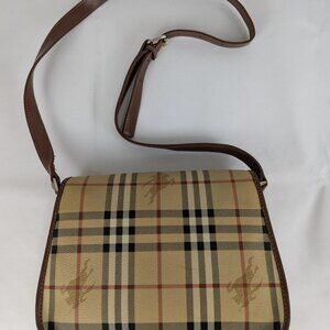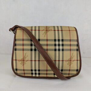 Authentic BURBERRY Nova Check Pattern Shoulder Bag PVC Beige Brown Made in Italy