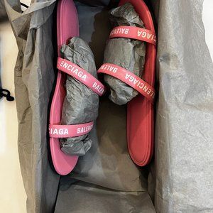 Authentic Balenciaga Round Flat Sandals in Pink/White