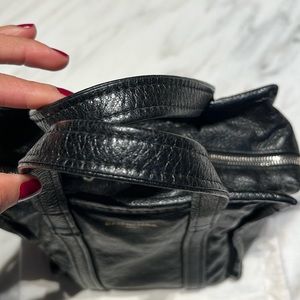 Authentic Balenciaga xs shopper in good used condition, black distressed calf leather with two inside pockets and zipper closer on top. Can be used as a hand bag or crossbody. Authenticity #4524581000A568024, W-8.5inch X H-9. Comes with dust bag. I had a tiny hole repaired at the bottom side seam so there is a leather patch on the inside shown in pics as well as a new piece of hardware on the strap. Will take reasonable offers