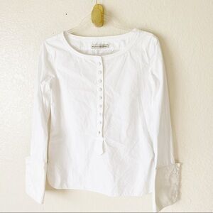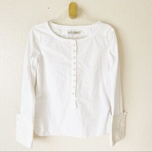 100% authentic top from Balenciaga. Half button down design. Long sleeves with cuffs. Perfect top to pair with jeans for a chic look