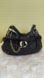 Elegant black leather handbag with gold accents. Perfect for any occasion.