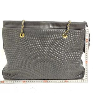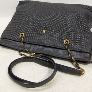 Authentic Bally Shoulder Bag Black Leather with gold accent trim straps EUC