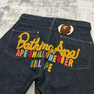 Authentic Bape 2000's Rainbow Champion Logo Denim Shorts Jorts 30