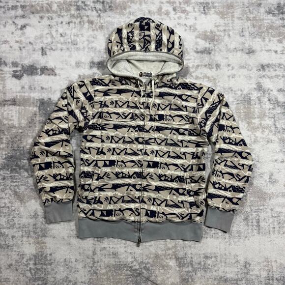 Authentic Bape 2000’s Tribal Camo Waffle Thermal Full Zip Hoodie M
