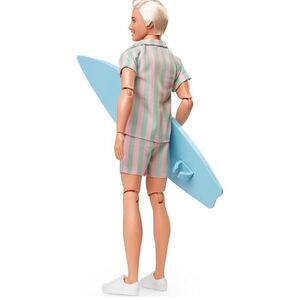 Authentic Barbie The Movie KEN DOLL in Pastel Striped Beach Set with Surfboard
