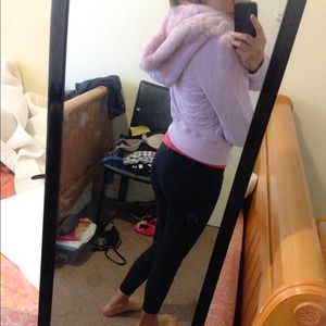 Super soft Bebe sweater with a detachable faux fur hoodie. The fur is VERY soft. Its also new with no tags. A very nice lavender color. Its a tad heavy compared to other sweater but only because im sure it keeps you really warm 😄 & its thick! Its a size medium but it runs a little small just like all other Bebe clothing.