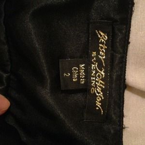 Black sequins a little above the knee. Spaghetti straps. Worn only once, perfect condition. Size 2. Satin sash ties in a bow in back or can be removed.