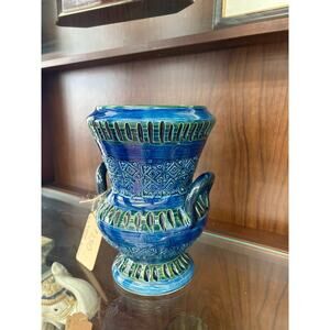 Authentic Bitossi Blue and Green Italian Pottery Vase with Handles