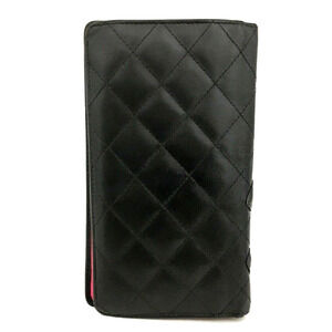 Authentic Black CHANEL Combon Line Lambskin Long Bifold Wallet