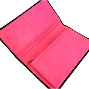 Authentic Black CHANEL Combon Line Lambskin Long Bifold Wallet Pink Interior