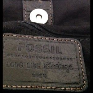 This is a cute black fossil purse with brown colored stitching. Two outside pockets. The inside has 1 zipper pocket, 1 cell phone pocket and 1 slip pocket. Bag size is 14" L x 10 1/2" H x 4" W. The strap drop is 10". In excellent condition, no tears or scratches. 🚫No Trades