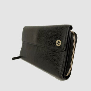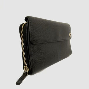 Authentic Black GUCCI Interlocking GG Leather Long Trifold Wallet