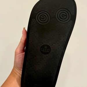 Authentic and Stylish black slide sandals with embossed GG design. Perfect for vacations and when you want to add just a little bit of luxury to your outfit. Lightly worn, 4-6 times.