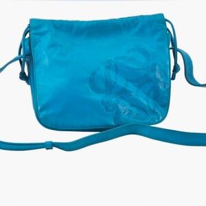 Authentic Blue LOEWE Anagram Vintage Shoulder Bag Purse Leather