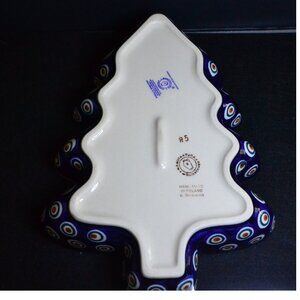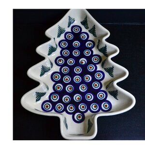 Authentic Boleslawiec Christmas Tree Design Dish Blue Peacock Eye Artisan Named