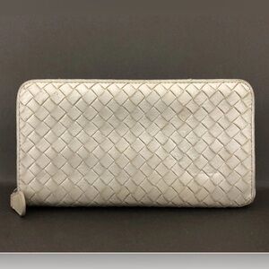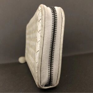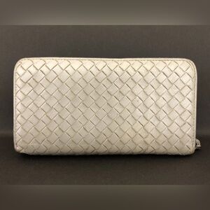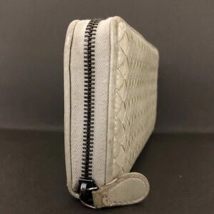 Authentic Bottega Veneta Intrecciato Lambskin Zip Around Long Wallet White
