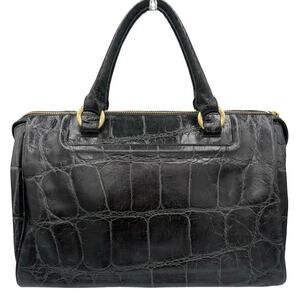 Authentic Brahmin Black Croc-Embossed Leather Satchel