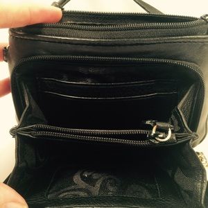 gently used, soft leather black cross body/ wallet. Great for all your incidentals pristine condition .