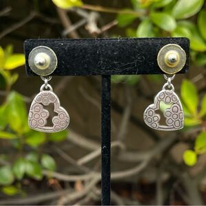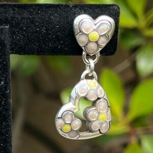 Authentic Brighton Pink & Yellow Enameled Silver Floral Heart Post Earrings.