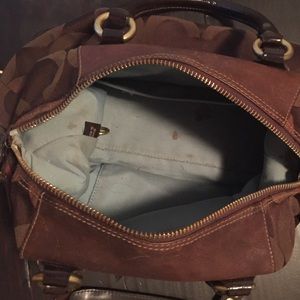 Authentic Brown Coach Purse with turquoise inside.