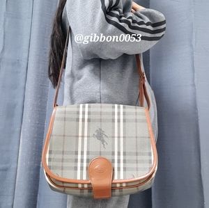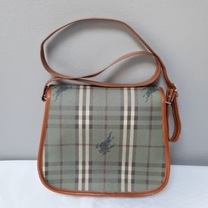 💯%Authentic VTG Buberry check green canvas ,Tan leather trim Crossbody shoulder bag, Good