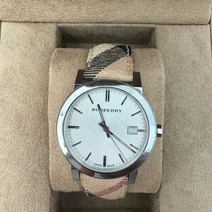 100% Authentic Swiss Burberry City Haymarket Check watch with signature box and manual. The watch is in near-perfect condition (has been worn a couple of times). The inner box is in perfect condition while the outer box shows a few signs of wear (see pictures).