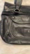 Can’t carry totes anymore. Just noticed small piping exposure on backside bottom. Small piping g wear on handle trim, otherwise good outside condition. Magnetic top closure. Front zip pocket under flap. Inside has some dirt and looks like glue by nylon at top of bag with a couple smaller from being vintage I believed. Zipper pocket inside.