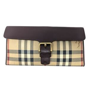 Get this classic luxury accessory for a steal! This 100% Authentic Burberry bifold wallet features the iconic Haymarket Check (Nova Check) canvas, beautifully finished with smooth brown leather trim and a chic gold-tone buckle closure.