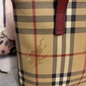 Burberry Haymarket check mini tote EUC no callouts measures 7 1/2 x 8 1/4 x 4 top snap closure one inside zip pocket comes with a COA
