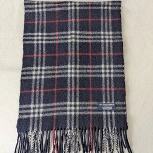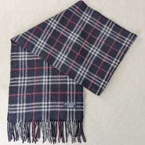 Authentic Burberry Lambswool Scarf Black/Navy – Unisex – Elegant Warm Accessory
