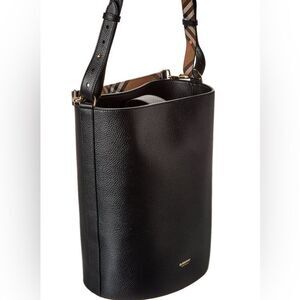 Authentic Burberry Leather Black Shoulder Bucket Bag,Magnetic Closure,Printed canvas interior,Adjustable and Removable shoulder strap,Approx measurement Height 13.5”,Width 12.5”,8”Deep,Top Handle 5”,Shoulder strap 20”.EUC