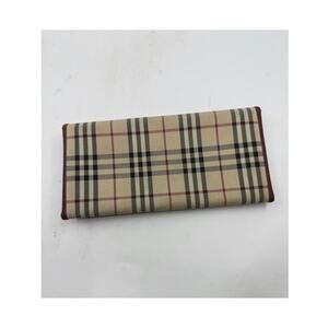 Authentic Burberry Long Continental Wallet Canvas Leather Snap Closure Beige