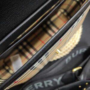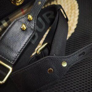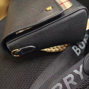 Authentic Burberry Note Medium Leather & Check Shoulder or Crossbody Bag New