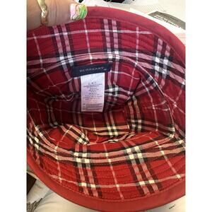 The product is an authentic Burberry Nova Check children's unisex Panama hat in vintage size 46. It features a classic red Nova check pattern and a stylish Panama hat design, making it a fashionable accessory for both boys and girls. With its high-quality Burberry brand and timeless design, this hat adds a touch of sophistication to any outfit while protecting young children from the sun. Perfect for adding a touch of British elegance to your little one's wardrobe.