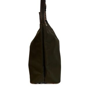 Burberry nylon shoulder bag, Burberry army green tote, Burberry Nova Check bag, Burberry zip nylon bag, Burberry everyday bag, Burberry forest green handbag, authentic Burberry nylon purse, designer nylon shoulder bag.