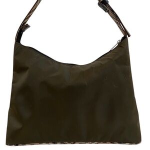 Authentic Burberry Nylon Shoulder Bag – Army Green, Nova Check, Zip Closure
