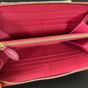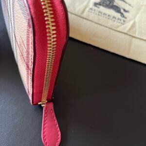 Authentic Burberry Pink Leather and Haymarket Check Long Zippy Wallet W/ DustBag