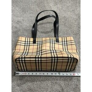 Authentic Burberry Vintage Nova Check PVC Leather Shoulder Tote Bag Beige 0473M