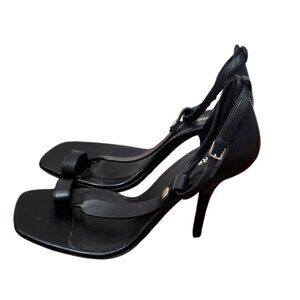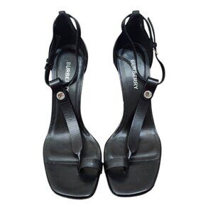 Authentic Burberry Women Black STEFANIE Toe-Ring Leather Stiletto Sandals US 7