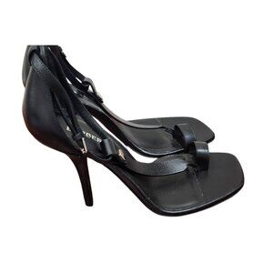 Burberry Women Black STEFANIE Toe-Ring Leather Stiletto Sandals EU 38/ US 7
